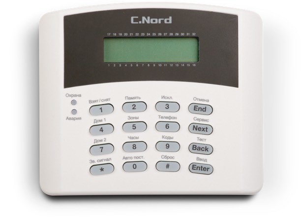 Проводная контрольная панель с клавиатурой на корпусе. Подойдёт для охраны небольших офисов и другой коммерческой недвижимости.