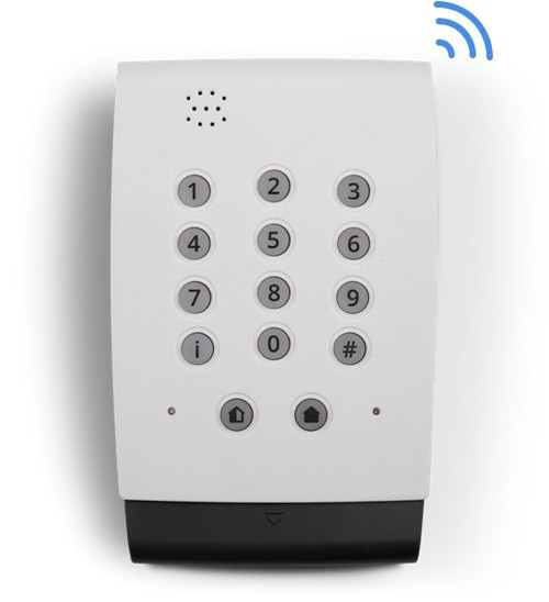 Беспроводная контрольная панель с клавиатурой на корпусе. Подойдёт для охраны небольших офисов и квартир.